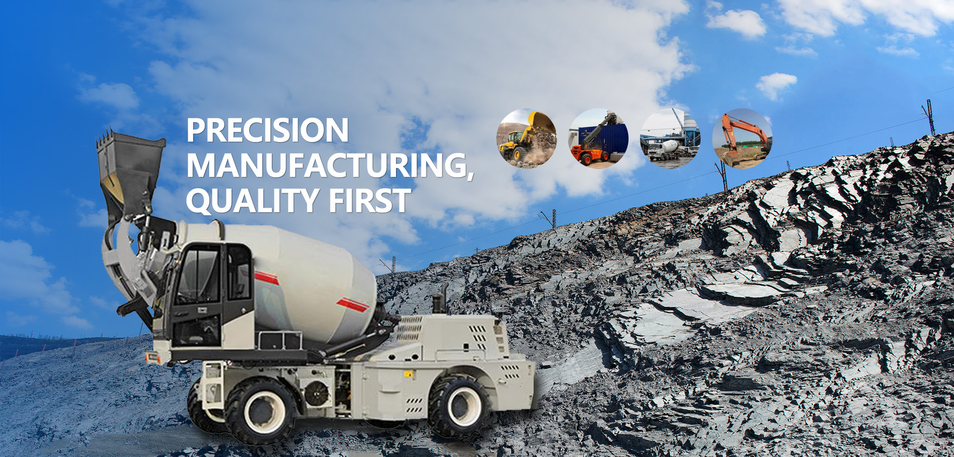 Our machinery includes concrete production and pumping equipment: concrete mixers, self-loading mixer trucks, concrete mixer trucks, trailer pumps, mixer trailer pumps, placing booms, boom pump trucks, etc., for the transportation and pouring of concrete.